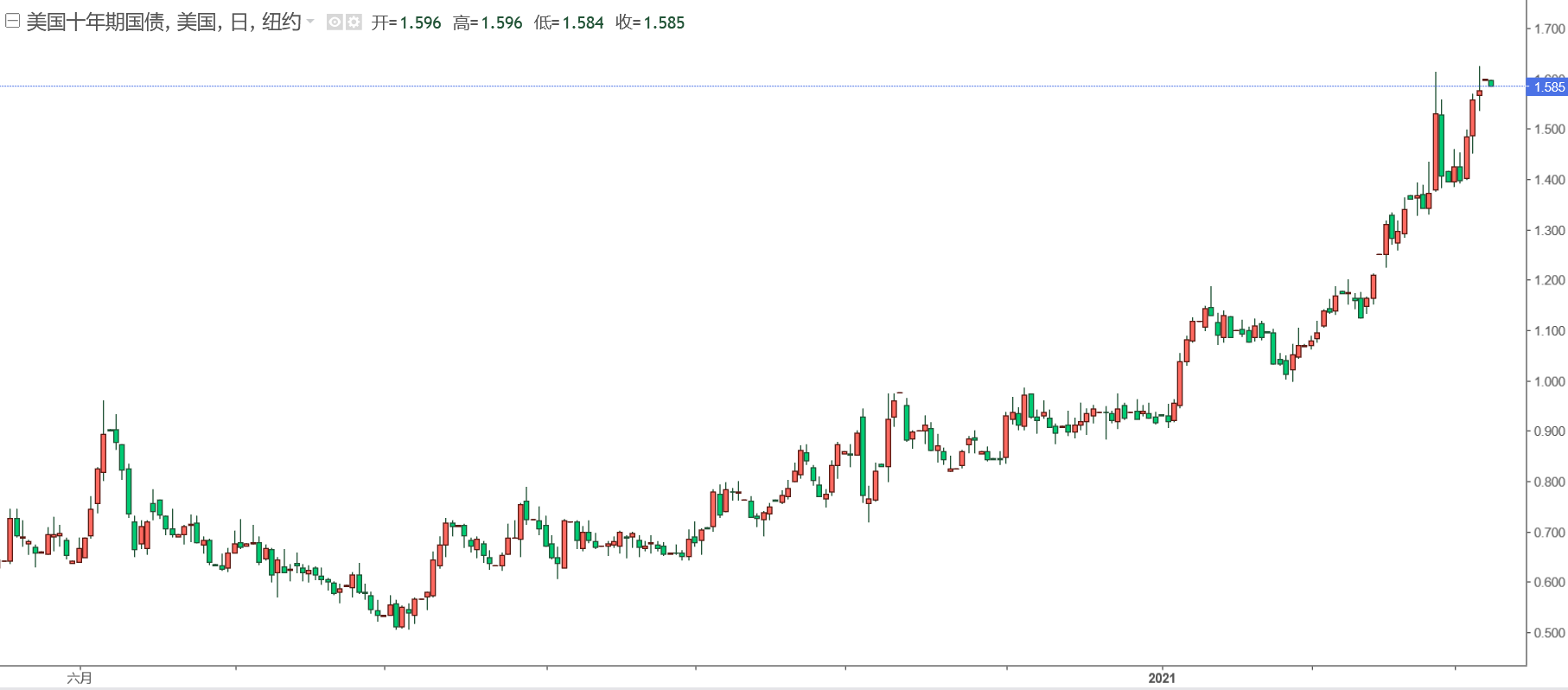 目前市场围绕美国十年期国债收益率形成宽幅波动,收益率再度涨破1.6%,美元继续走强,黄金连续三周下跌,周一再度跌破1700,探低至1676美元/盎司。一方面美联储不会立即出手压制收益率,投资者大为失望,周五的美国非农就业数据大幅好于市场预期,市场有所企稳。对于美股“牛市女皇”、“木头姐”Cathie Wood来说,看好特斯拉的信仰是不会那么轻易改变的,因此每一次大跌都被视为抄底机会。